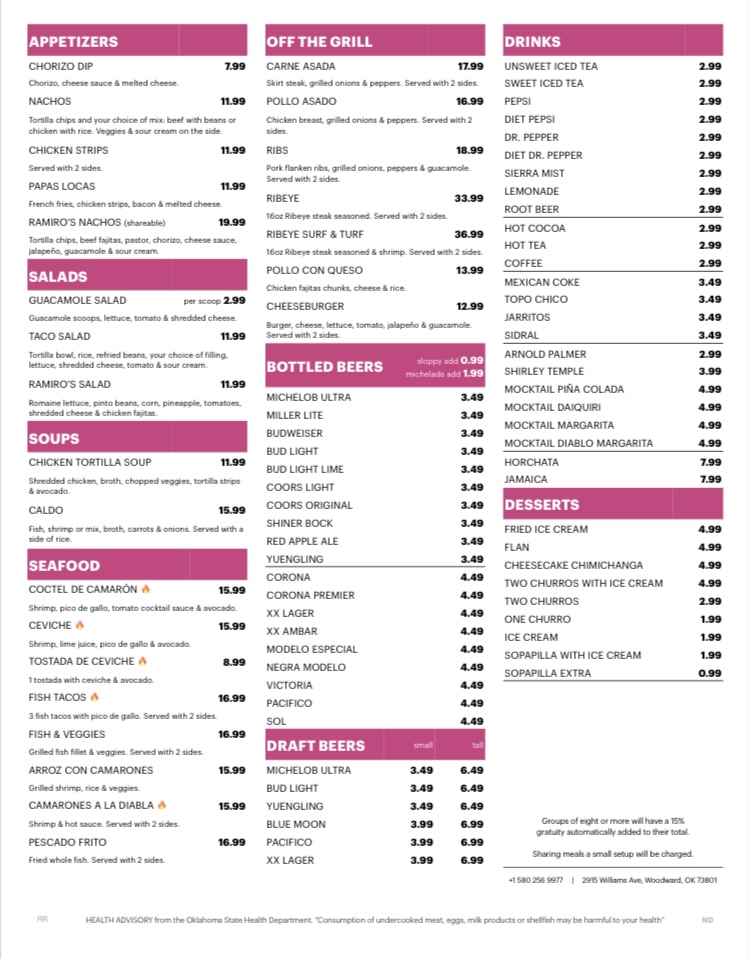 Welcome to Ramiro's Mexican Restaurant, a vibrant culinary gem located at 2915 Williams Ave in Woodward, OK. Known for its warm atmosphere and exceptional service, this restaurant elevates Mexican cuisine with an extensive menu featuring tantalizing dishes. Diners rave about the Cinco de Mayo plate, the shredded beef tamale, and the spicy pork enchilada paired with zesty verde sauce.